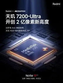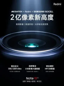 Tài khoản Redmi Weibo đã tiết lộ thêm thông tin chi tiết về mối quan hệ hợp tác giữa ba nhà sản xuất là Xiaomi, Mediatek và Samsung để mang đến “một tầm cao mới cho trải nghiệm chụp ảnh 200 MP”. Cảm biến ISOCELL HP3 giống với cảm biến được sử dụng trong Redmi Note 12 Pro+, nhưng chipset 4nm mới sẽ cải thiện khả năng xử lý để cho ra một bức ảnh tuyệt vời.