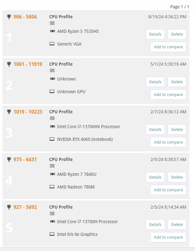 Sử dụng công cụ 3DMark – bài test CPU Profile cho kết quả ở tối đa nhân là 5760 và đơn nhân là 906. Khi so sánh với các đời CPU khác, Ryzen 5 7535HS trên Acer Nitro V 15 ProPanel có hiệu năng tương đồng với các CPU Ryzen 7 và Core i7 đời cao hơn.