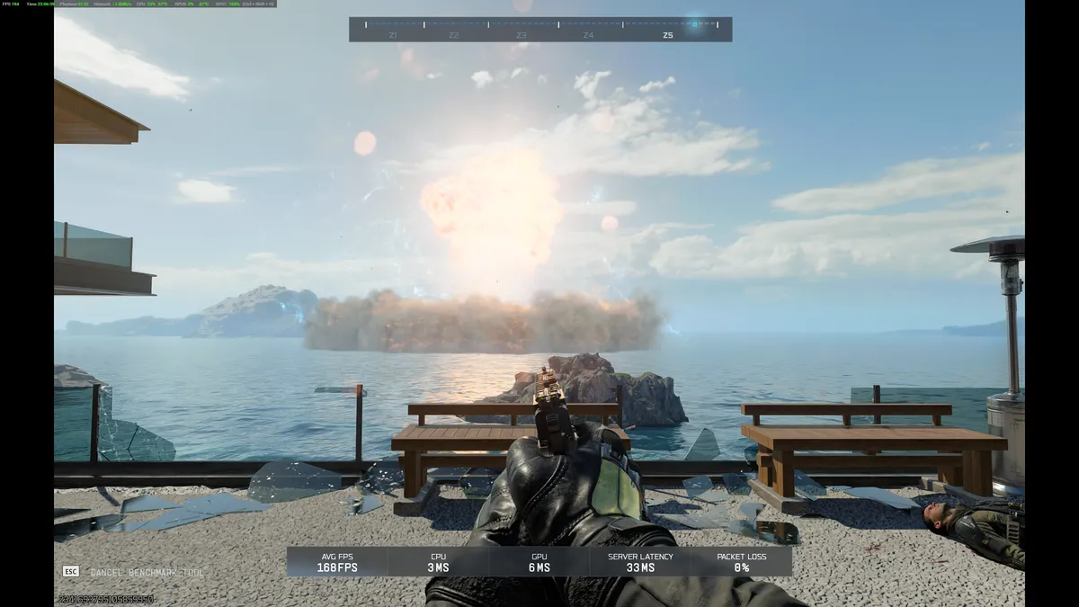 Ray Regeneration Low vẫn mang lại lợi ích về ánh sáng tái dựng, giữ được độ mềm của bóng đổ và độ liền lạc ở vùng phản chiếu mà không gây quá tải cho quá trình dựng tia. Tuy nhiên, khi test trong cảnh phức tạp với nhiều nguồn sáng hoặc hiệu ứng nổ liên tục, tốc độ khung hình vẫn chưa đạt ngưỡng có thể khai thác hết lợi thế 144Hz. Dù vậy, so với mức High, đây là thiết lập khả thi hơn nhiều cho 9060 XT nếu người dùng muốn giữ Native render mà vẫn bật toàn bộ tính năng của FSR Redstone. Mức Low cho thấy sự cân bằng hợp lý giữa hiệu suất và chất lượng ánh sáng khi chạy game nặng ở 2K.