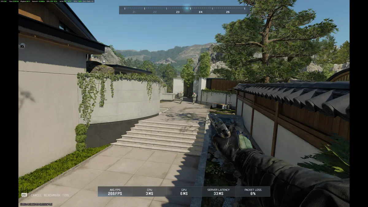 Tuy vậy, ở bối cảnh hành động nhanh, người dùng chú trọng nhiều hơn vào độ mượt hơn là độ chi tiết tinh, nên mức Ultra Performance vẫn tạo ra trải nghiệm ổn định và dễ kiểm soát. Điểm đáng chú ý là dù giảm render resolution mạnh, chất lượng đồ họa vẫn có ánh sáng tự nhiên, chứng tỏ khả năng xử lý ánh sáng độc lập tương đối với chất lượng pixel gốc. Test 9 khẳng định mức Ultra Performance phù hợp nhất với mục tiêu FPS tối đa, đặc biệt khi kết hợp với Ray Regeneration và Frame Generation để duy trì tính nhất quán thị giác.