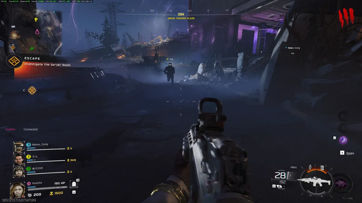 Trong quá trình chơi thực tế, công cụ theo dõi hiệu năng ghi nhận GPU hoạt động ổn định ở mức sử dụng trung bình 97%, nhiệt độ khoảng 46°C, trong khi CPU tải trung bình chỉ 27%. Nhờ đó, các phép đo tốc độ khung hình phản ánh đúng tác động của từng thiết lập Ray Regeneration và FSR 4, đảm bảo tính nhất quán giữa các bài test.