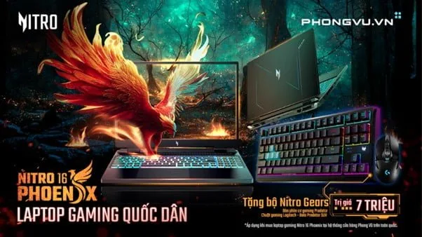 Laptop gaming Acer Nitro 16 Phoenix (AN16-41-R5M4) hiện đang được bán độc quyền tại hệ thống cửa hàng Phong Vũ trên toàn quốc, kèm bộ quà tặng Nitro gears trị giá 7 triệu đồng.