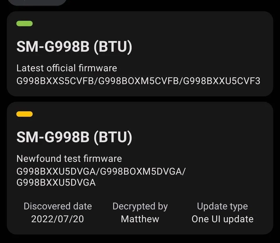 Bản cập nhật One UI 4.1.1 được phát hiện bởi một người dùng Reddit và có phiên bản G998BXXU5DVGA. Tuy nhiên, tại thời điểm viết bài chỉ có nội bộ của Samsung mới có thể tải xuống bản cập nhật và cài đặt nó trên điện thoại của họ. Điều này có nghĩa là Samsung hiện đang thử nghiệm bản cập nhật trên Galaxy S21 Ultra.
