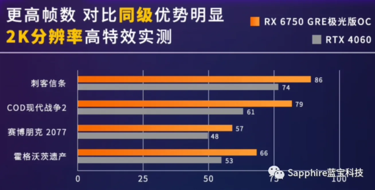 Sapphire cũng chia sẻ một vài số liệu về hiệu năng với việc card đồ họa Radeon RX 6750 GRE 12 GB Aurora OC nhanh hơn RTX 4060 của NVIDIA trong một số tựa game và thậm chí còn vượt qua đối thủ tới 30% trong COD: MW2. RTX 4060 được bán lẻ với giá khoảng 2300-2600 RMB, vì vậy đây là mức giá rất cạnh tranh so với hiệu năng thực của RX 6750 GRE, chắc chắn RTX 4060 sẽ phải gặp khó khăn khi cạnh tranh với nó.