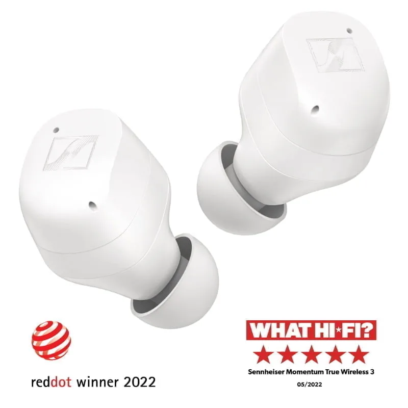 Là sản phẩm giành chiến thắng trong giải thưởng thiết kế thường niên Red Dot Design Award 2022, thiết kế mới của mẫu tai nghe sở hữu phong cách đẹp mắt, thiết kế công thái học đậm chất viễn tưởng đem đến sự thoải mái và vừa vặn lâu dài khi sử dụng. Mẫu tai nghe MOMENTUM True Wireless 3 cũng được tặng kèm một vài đệm tai bằng silicone với kích thước khác nhau được thiết kế để vừa với nhiều dạng tai cả về hình dạng lẫn kích thước. Nhờ vào lớp vỏ có khả năng chống tạt nước đạt chuẩn IPX4, mẫu tai nghe MOMENTUM True Wireless 3 được chế tạo cho những chuyến hành. Dù cho bạn phải chạy dưới trời mưa, hay căng mình với những bài tập thể lực, mẫu tai nghe nhét tai thế hệ mới của Sennheiser vẫn đem tới trải nghiệm nghe hàng đầu ngay cả trong những điều kiện bất lợi nhất.