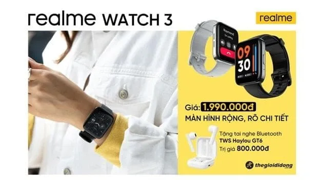 realme – thương hiệu điện thoại thông minh phát triển nhanh nhất thế giới, chính thức ra mắt đồng hồ thông minh realme Watch 3. Đây là sản phẩm thuộc thế hệ AIoT mới nhất, sở hữu nhiều cải tiến vượt trội như màn hình siêu hiển thị 1.8 inch, thiết kế thời trang năng động, nghe gọi ổn định với chip Bluetooth kép, và quản lý sức khỏe toàn diện cho người dùng, với mức giá chỉ 1.990.000 đồng.