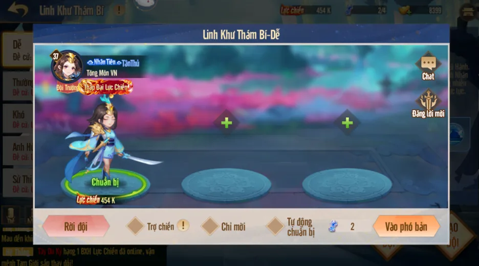 Đây là phần phó bản chiến đấu PvE cơ bản được đặt trong chức năng gia viên của người chơi. Sẽ có nhiều phó bản khác nhau cung cấp từng loại nguyên liệu cần thiết giúp tăng sức mạnh cho chiến đội như rượu tiên tăng level, tiên đơn giúp đột phá nhân vật, ngọc giúp cường hóa trang bị…
