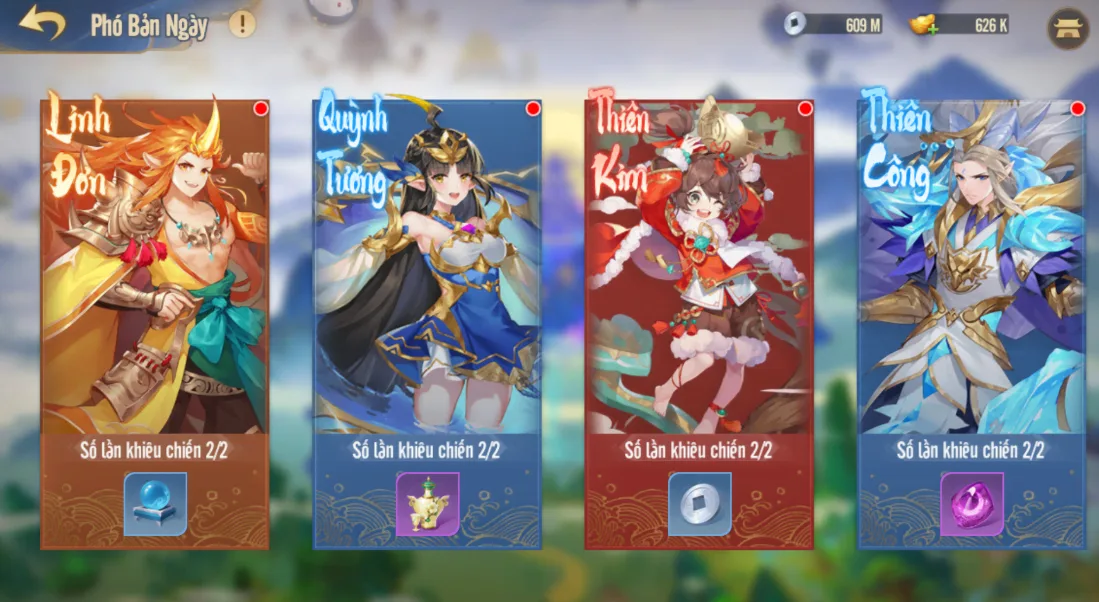Các phó bản này sẽ mở từng tầng theo cấp độ nhân vật chính. Tầng càng cao thì phần thưởng càng nhiều và cao cấp hơn. Mỗi ngày, mỗi phó bản sẽ có 2 lượt thách đấu miễn phí, phần còn lại phải trả bằng nguyên bảo.