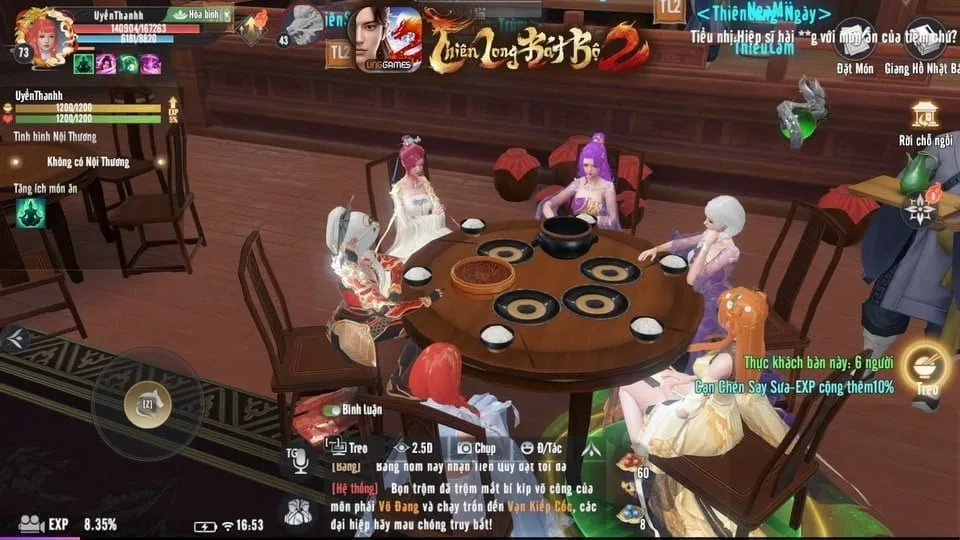 Những tình tiết đó cho thấy rằng những địa điểm này có vai trò quan trọng đến mức nào trong các câu chuyện kiếm hiệp. Thiên Long Bát Bộ 2 biết rõ điều này, và vì thế đội ngũ phát triển game đã thực hiện một tính năng rất thú vị để tái hiện lại những cuộc tụ họp của quần hùng thiên hạ. Mang tên Tiệm Cơm Giang Hồ, đây là một hoạt động không chỉ đem lại niềm vui tụ họp cho nhân sĩ võ lâm của Thiên Long Bát Bộ 2 VNG mà còn có thể đem lại lợi nhuận lớn lao, trở thành nguồn kinh phí cho hoạt động của bang phái.