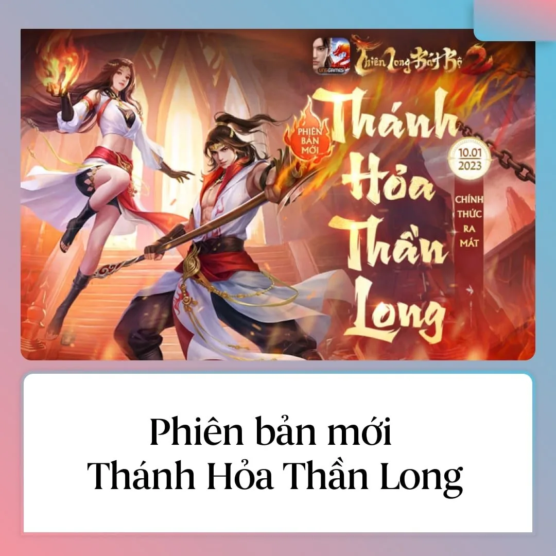 Giữ đúng lời hứa với game thủ, Ban điều hành tựa game Thiên Long Bát Bộ 2 VNG đã chính thức ra mắt phiên bản mới Thánh Hỏa Thần Long từ ngày 10/1. Sự xuất hiện của môn phái Minh Giáo cùng với đó là các tính năng mới như Chuyển đổi môn phái, Hệ thống Ám Khí, chế độ chơi mới Thi Đấu Môn Phái – Hoa Sơn Luận Kiếm, PvP 6vs6 liên server Thức Kiếm Thiên Hạ hay bản đồ mới hứa hẹn sẽ gia tăng trải nghiệm và nâng tầm võ học của game thủ trên con đường xưng bá giới Thiên Long.