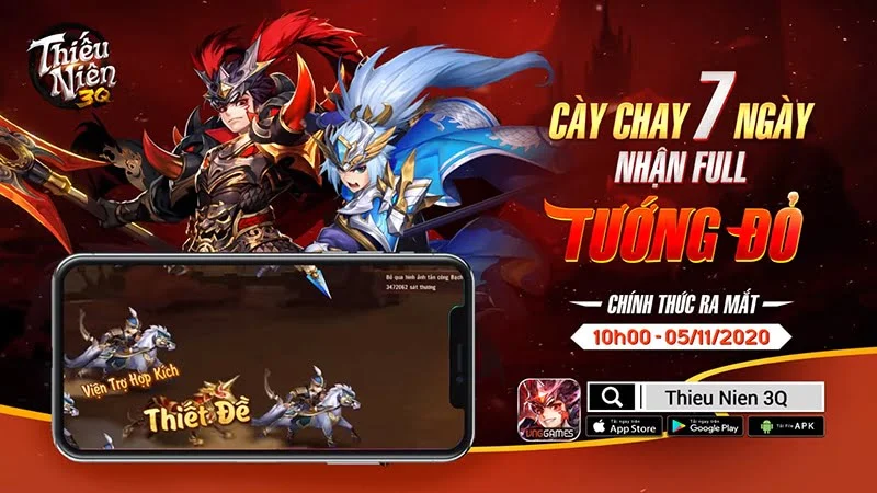 Sau hơn một tháng chuẩn bị kỹ lưỡng, sáng ngày 5/11, Thiếu Niên 3Q – siêu phẩm Tam Quốc số 1 Châu Á chính thức đến tay người chơi trên cả hai hệ điều hành Android & iOS.