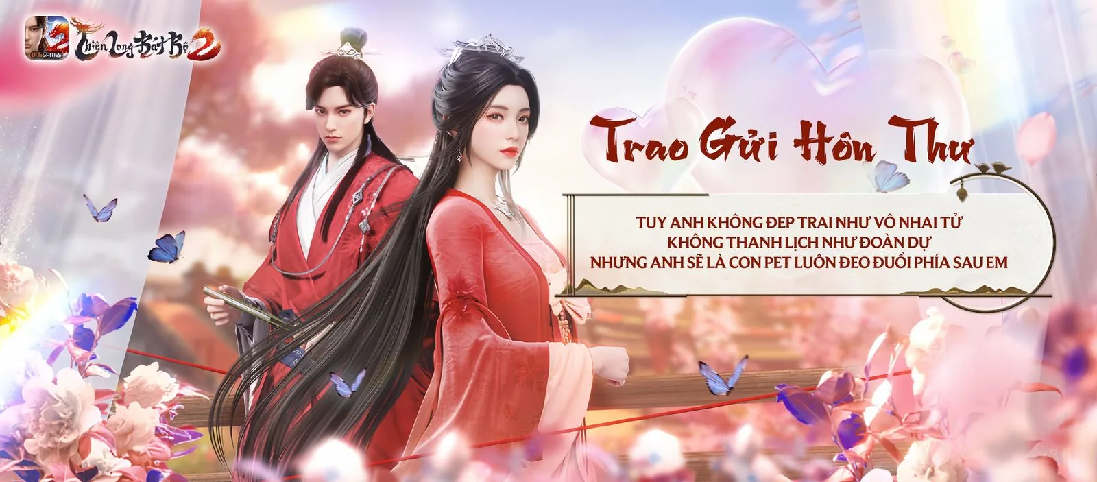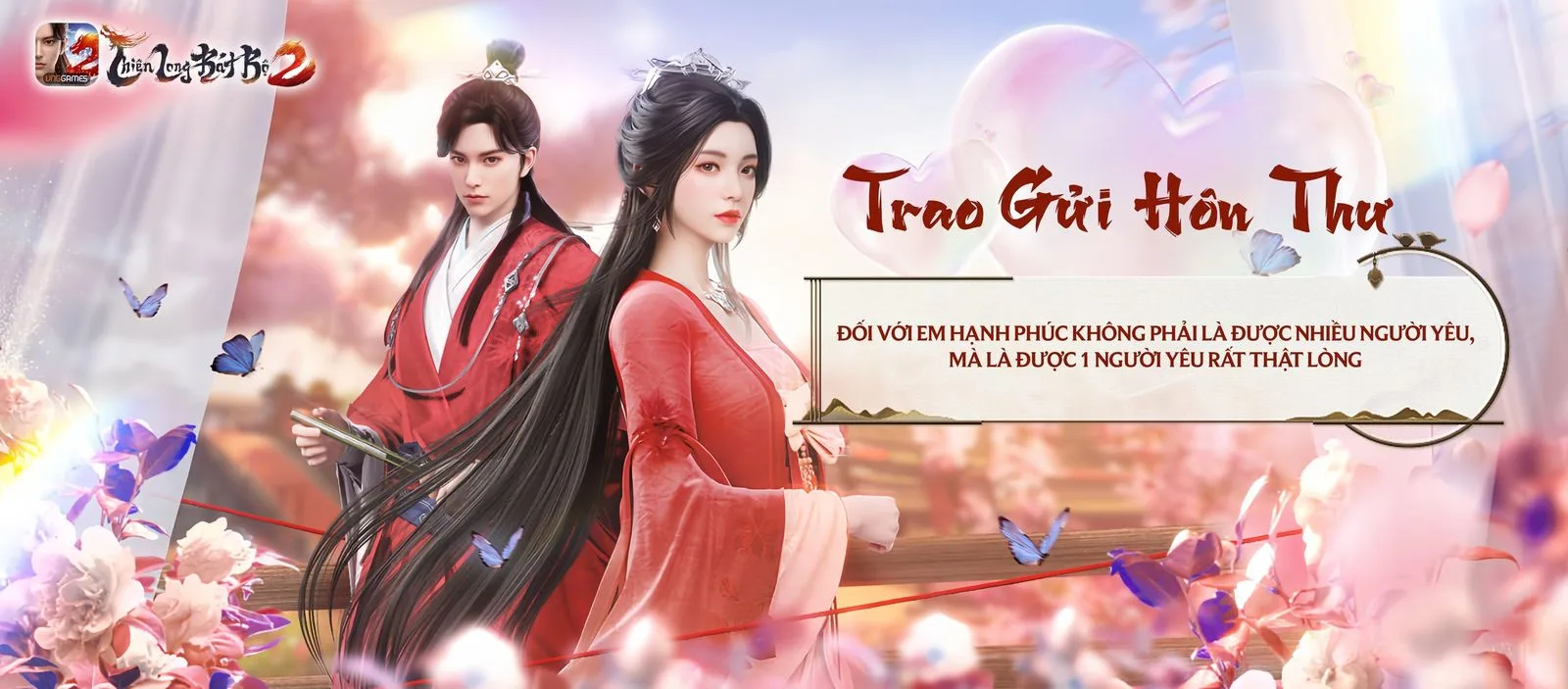 Cũng trong thời gian này, người người nhà nhà khắp chốn Thiên Long đã rộn ràng cưới hỏi, đi tìm tân lang – tân nương cho riêng mình. Họ cùng nhau gửi những lời yêu thương qua sự kiện Trao Gửi Hôn Thư và nhận về nhiều thưởng hấp dẫn như Code, thẻ Zing cùng các vật phẩm đậm chất Thiên Long Bát Bộ 2 VNG.