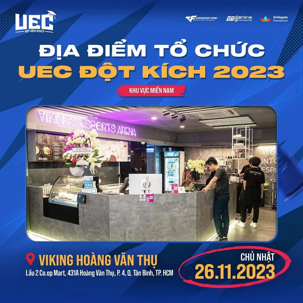 Giải đấu UEC Đột Kích 2023 khu vực phía Nam đã chính thức hoàn tất giai đoạn đăng ký và chuẩn bị khởi tranh. Theo lịch trình, giải đấu sẽ diễn ra trong ngày 26/11/2023. Địa điểm tổ chức thi đấu đã được ấn định là Vikings – 431A Hoàng Văn Thụ, Phường 4, Quận Tân Bình, thành phố Hồ Chí Minh.