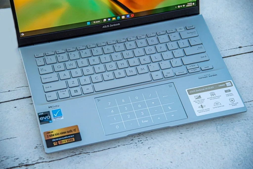 Điều làm đột phát trải nghiệm thực tế của ASUS Zenbook 14 OLED đó chính là chuẩn Intel Evo 3.0. Nó cần phải đạt đủ các tiêu chuẩn về hiệu năng, pin, màn hình và cả webcam thì mới được công nhận có Intel Evo. Với thế hệ 3.0, chúng ta sẽ có được hiệu năng khi sử dụng pin gần như tương đồng với khi chúng ta cắm sạc – điều mà người dùng thấy rất khó chịu đối với laptop windows trước đây. Mình có test thực tế thì hiệu năng khi dùng pin chỉ thấp hơn khi cắm sạc khoảng 10% và vẫn dùng những tác vụ năng như premiere, photoshop 1 cách mượt mà (sử dụng trong thời gian dài).