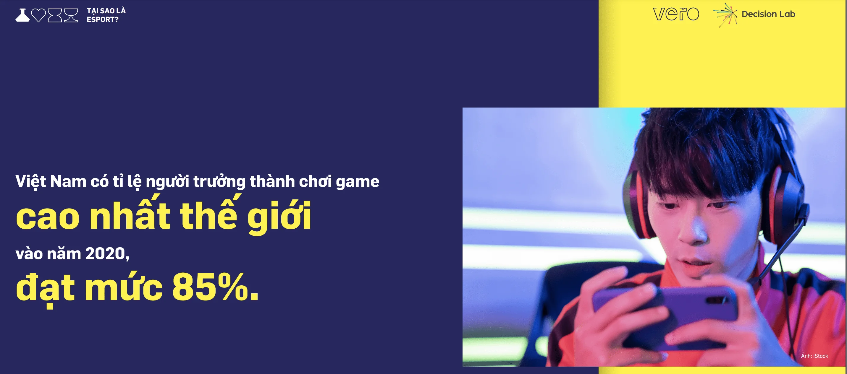 Dẫu vậy, nguồn gốc đặc thù của nó đã vô tình tạo nên thành kiến rằng esport chỉ dành cho những “người trong cuộc”, những người thực sự sành và hiểu biết về thể thao điện tử. Để khai phá tiềm năng của hệ sinh thái esport, Vero đã thực hiện một cuộc khảo sát với những người hâm mộ thể thao điện tử. Từ đó thu được hiểu biết chung của các nhóm người hâm mộ về thể thao truyền thống và văn hóa đại chúng, cũng như làm rõ tính chất kết hợp của esport trên cả hai phương diện này. Hiện Việt Nam có khoảng 1/3 dân số đang tham gia vào các bộ môn thể thao điện tử.