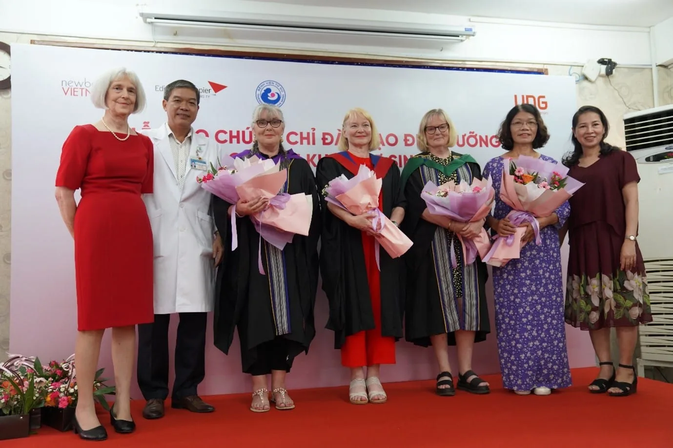 Bà Suzanna Lubran cùng các đại diện từ Bệnh viện Từ Dũ và Trường Đại học Edinburgh Napier