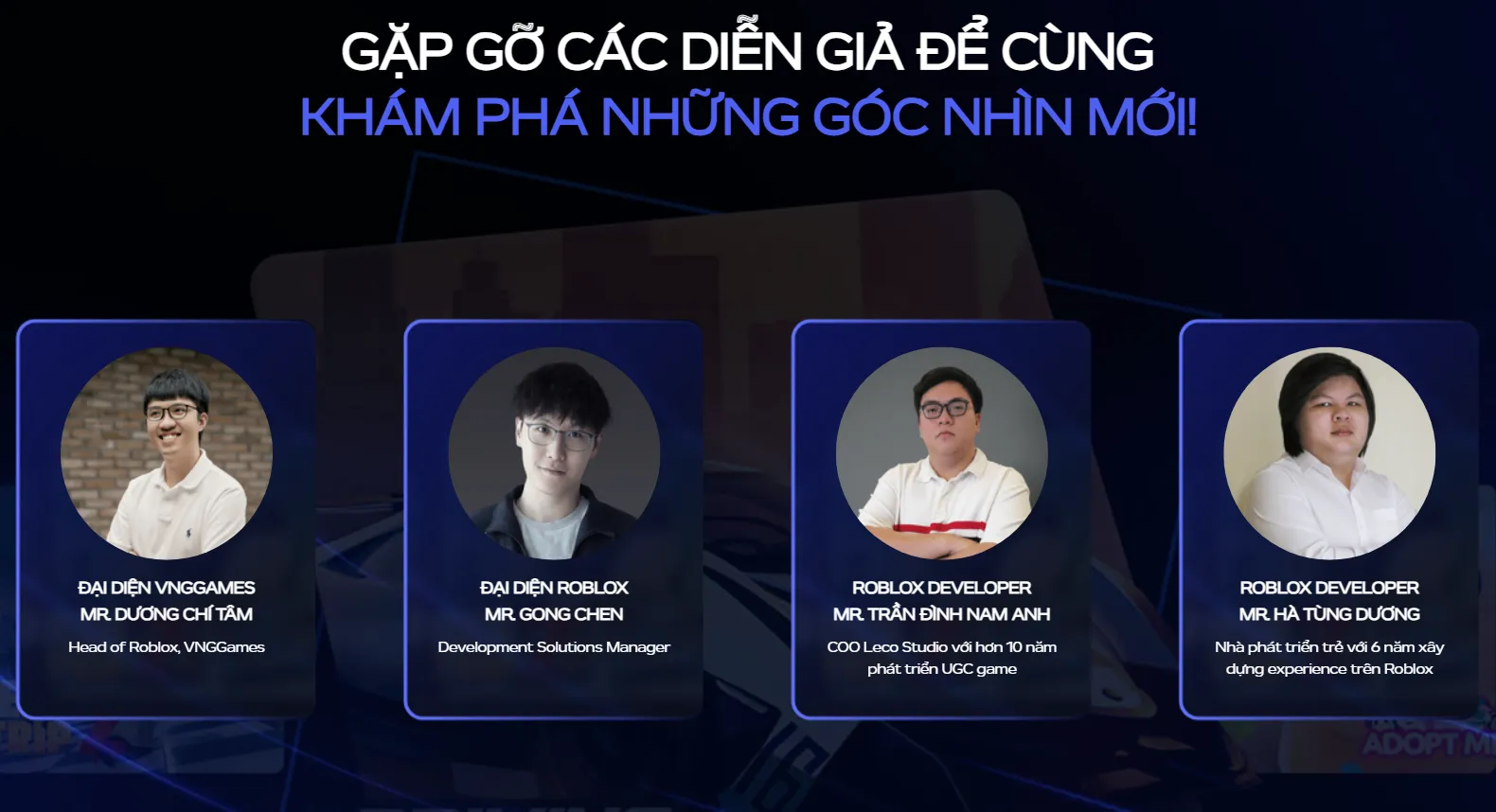 Sự kiện cũng tạo điều kiện để người tham dự gặp gỡ, giao lưu với đại diện của các studio game Việt Nam tiêu biểu đã và đang có những dự án thành công trên Roblox. Một trong số này có thể kể đến Trần Đình Nam Anh – Giám đốc vận hành của COO Leco Studio, một trong những nhà phát triển Roblox kỳ cựu tại Việt Nam, có gần một thập kỷ kinh nghiệm thực chiến trong lĩnh vực game. Việc tìm hiểu về hành trình, kinh nghiệm và những bài học từ các dự án thực tế của COO Leco Studio hay các diễn giả trong chương trình sẽ mang lại nguồn cảm hứng và những định hướng giá trị cho các nhà phát triển đang trên con đường xây dựng sự nghiệp.