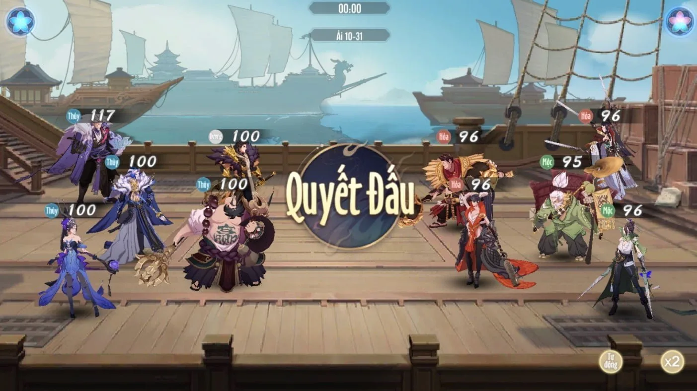 Có thể thấy rất rõ việc xây dựng đội hình Võ Lâm Nhàn Hiệp hướng tới khả năng gây sát thương, khi có tới 4 trên 6 vai trò thiên hoàn toàn về dame chủ lực. Bên cạnh đó, yếu tố Ngũ hành tương sinh tương khắc cũng là yếu tố game thủ cần lưu tâm khi xếp trận cho mình. Tính năng này được nhắc thông qua biểu tượng bông hoa 5 cánh ở góc trên cùng bên trái khi bạn tham gia vượt ải.