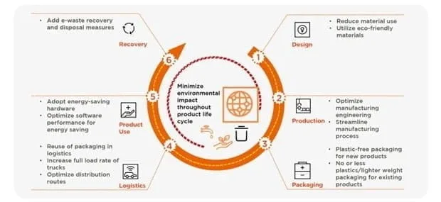 Xiaomi đã giảm việc tiêu thụ tài nguyên và giảm thiểu tác động môi trường của các sản phẩm bằng cách tận dụng tiến bộ công nghệ và tối ưu hóa quy trình sản xuất. Trong biểu đồ bên dưới, các tác động đến môi trường được giảm thiểu trong suốt vòng đời của các sản phẩm Xiaomi.