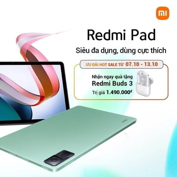 Redmi Pad được mở bán với 2 phiên bản: 3GB RAM + 64GB ROM có mức giá 6.290.000đ và 4GB RAM + 128GB ROM có mức giá 6.990.000đ. Riêng phiên bản 4GB RAM + 128GB được bán độc quyền tại Thế giới Di động. Đặc biệt, từ ngày 07 đến ngày 13 tháng 10, khách hàng sẽ nhận ngay quà tặng Redmi Buds 3 trị giá 1,490,000đ khi mua bất kì phiên bản nào của Redmi Pad.